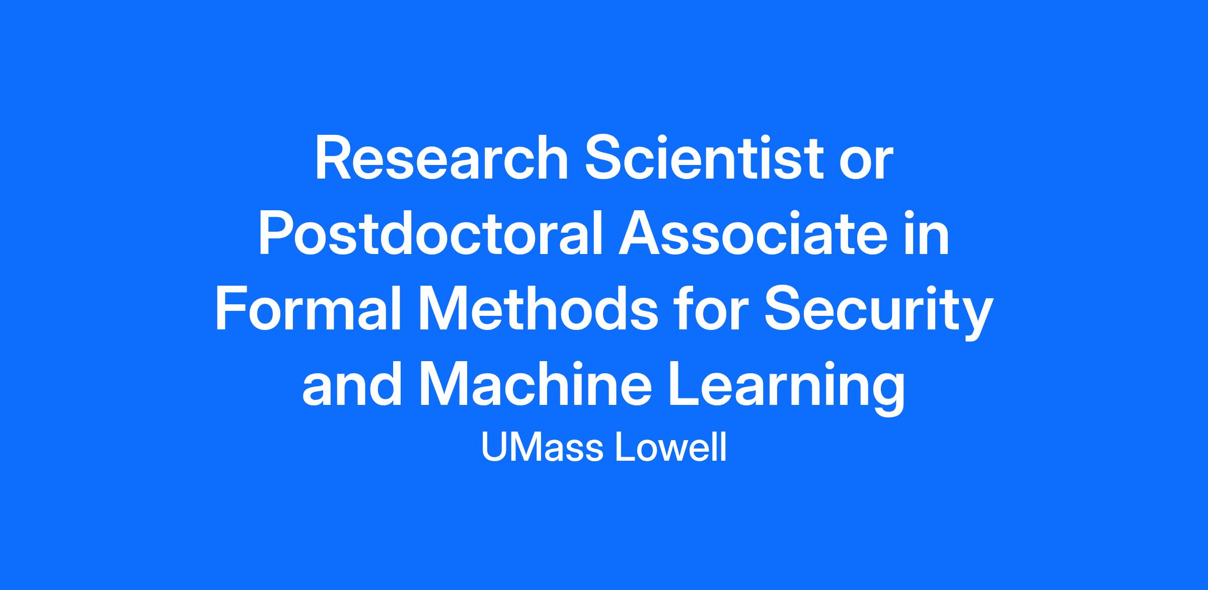 The Programming Languages research group (PLOW), led by Prof. Anitha Gollamudi at the Richard Miner School of Computer Science and Information, invites applications for a postdoctoral associate or research scientist position in the area of formal methods for security and machine learning.