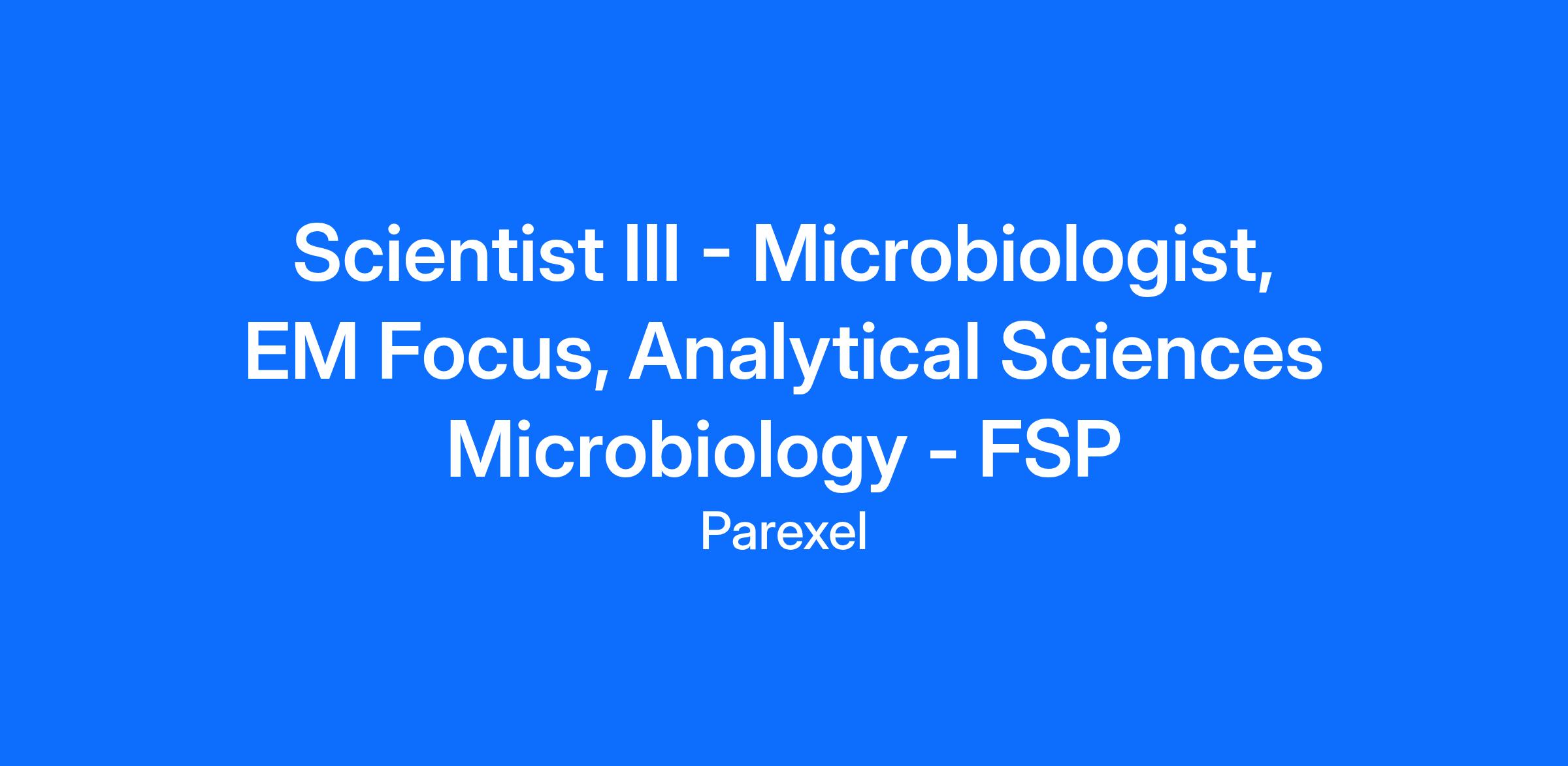 We are looking to fill a microbiologist position (environmental monitoring focus) working as a full-time employee of Parexel FSP on long-term assignment onsite at one of our clients in Rahway, NJ. This position offers full benefits, sick time, 401K, paid holidays, and paid time off. This position does not offer sponsorship.