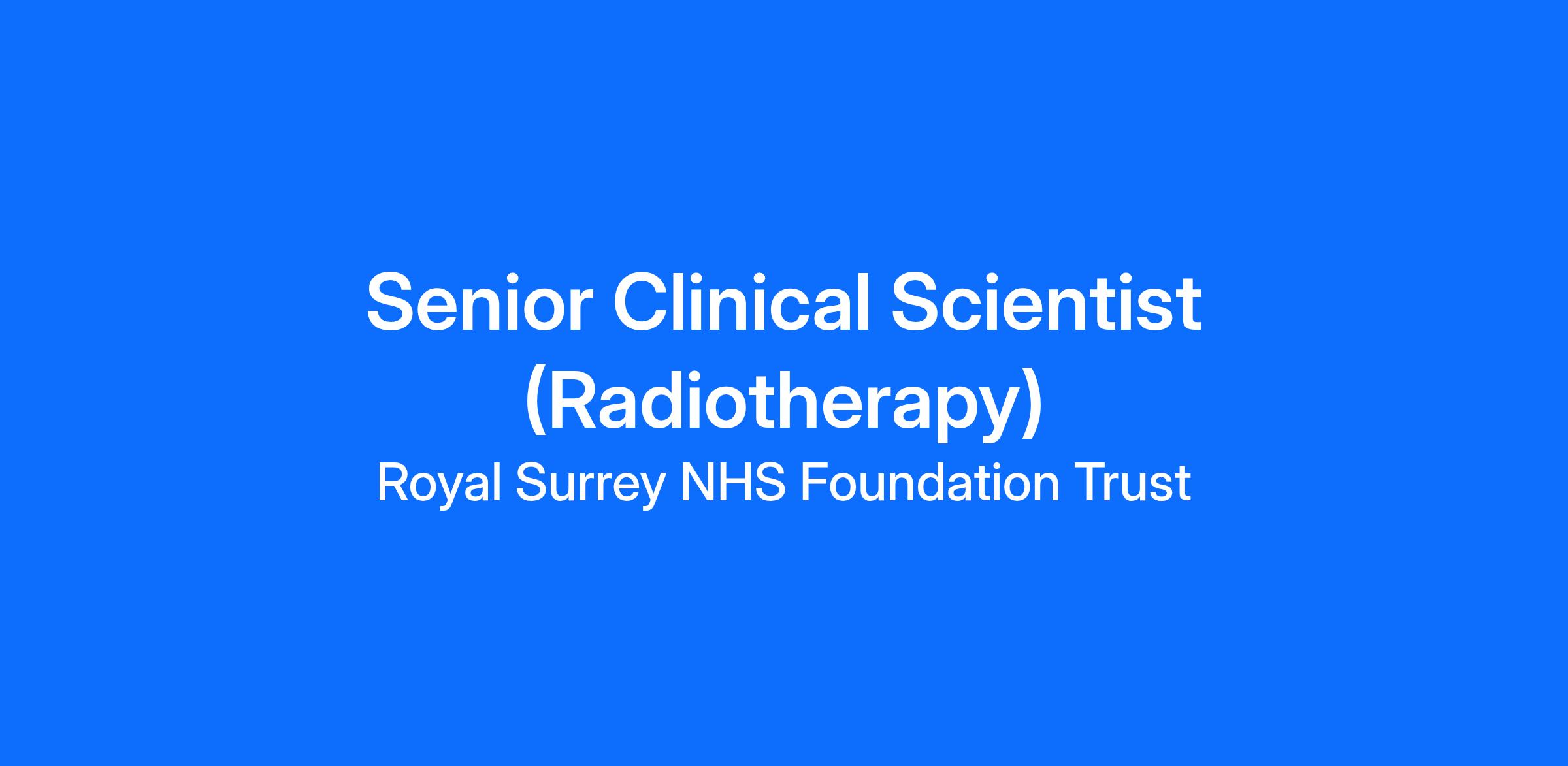 Senior Clinical Scientist (Radiotherapy) – Band 8A (or Band 7 Development Role)