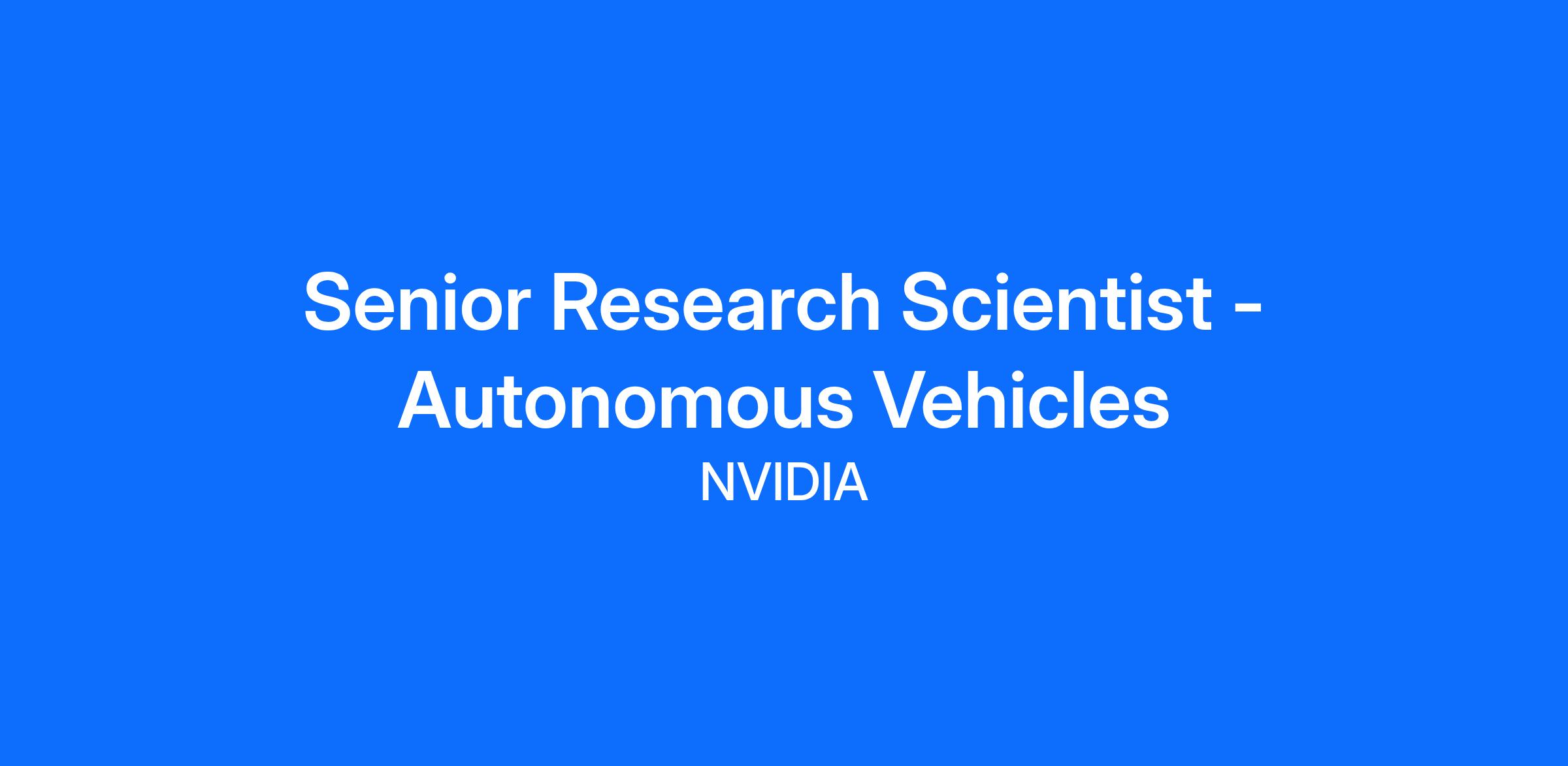 NVIDIA is recruiting top Senior Research Scientists for Autonomous Vehicle Research! AI-powered autonomous vehicles that can learn, reason, and interact with people are no longer science fiction. Self-driving cars, autonomous delivery vehicles, and autonomous construction vehicles, among others, are getting increasingly close to widespread deployment. However, fundamental research questions still need to be addressed for us to achieve full vehicle autonomy. For instance, how can we: Enable novel training paradigms that leverage simulation to train AV policies in closed-loop? Equip autonomous vehicles with online and offline assurances that meet the standards for safety-critical systems? Ensure that autonomous vehicles work seamlessly in new places?