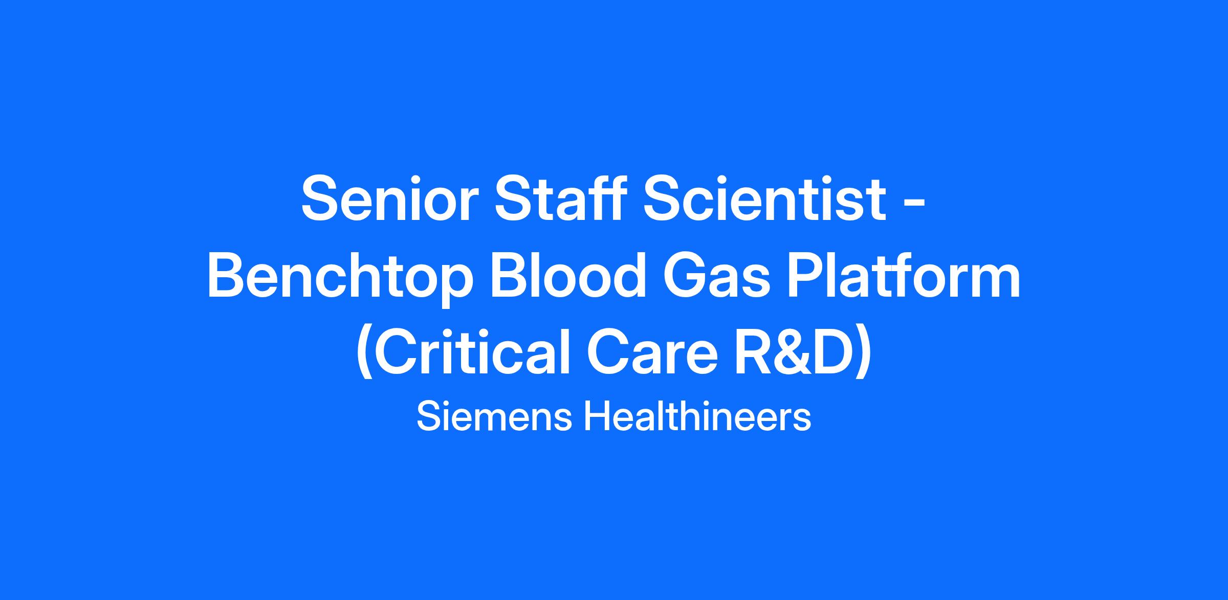 This is a role well suited to an ambitious professional, looking for the next step in their career. As a Senior Staff Scientist, Benchtop blood gas - Critical Care you will be responsible for: