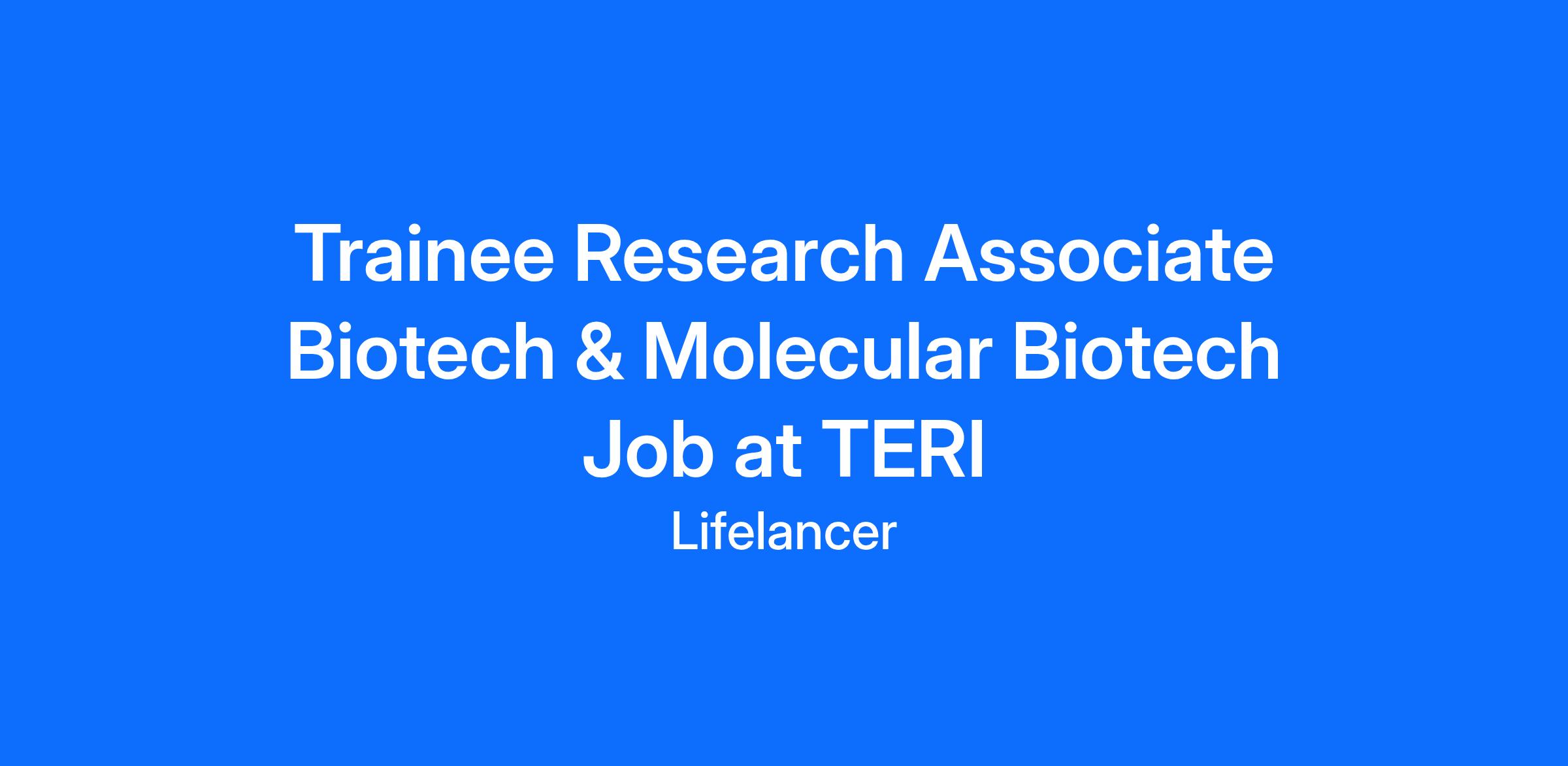Job Title: Trainee Research Associate Biotech & Molecular Biotech Job at TERI